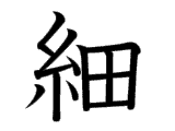 | Kunyomi | hoso(i), hoso(ru), koma(kai) |