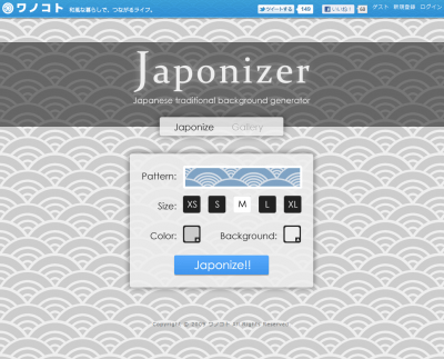 Japonizer is an web generator for background image, which generates images of traditional Japanese patterns.